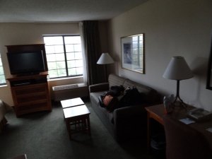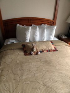 We got to stay at Staybridge Suites. Oatmeal made himself right at home.