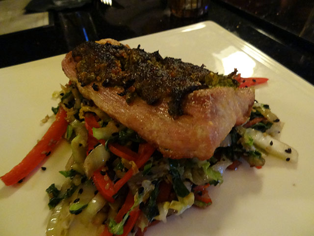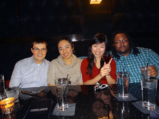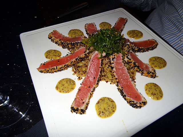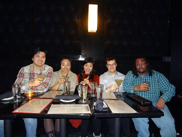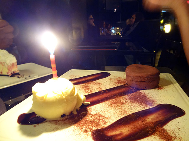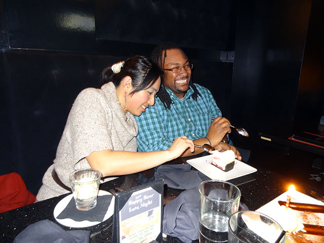 After some time, we finally got around to ordering our main courses. Sarah and Ellen shared a surf & turf for two, I had cilantro-crusted mahi, Dante ordered grilled swordfish, and John ordered sesame-seared tuna. The tuna was amazing, and at some point I will recreate it and enjoy it. Afterwards we all ordered another round a drinks, dessert (including Ellen’s Birthday dessert), and hung out for a while before finally deciding to head to Babs’.