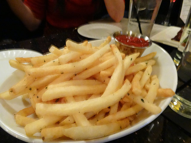 We arrived at the Black Pearl and ordered our drinks and some appetizers. We got some asian beef tenderloins and pommes frites. Everyone also ordered their drinks; Sarah and Dante had a Tequila-based drink, Ellen had a fruity martini, John had a spicy martini, and I had a gin-based martini.