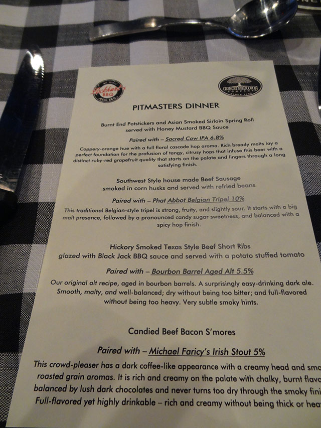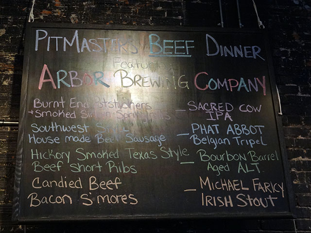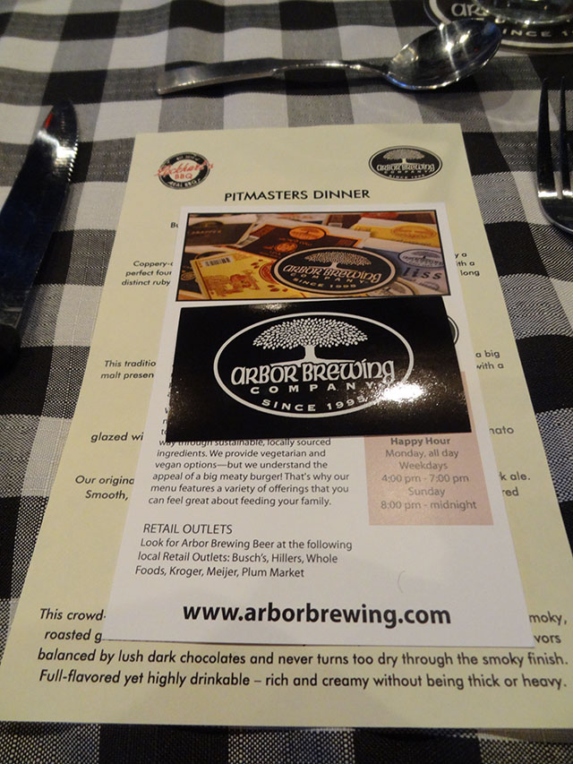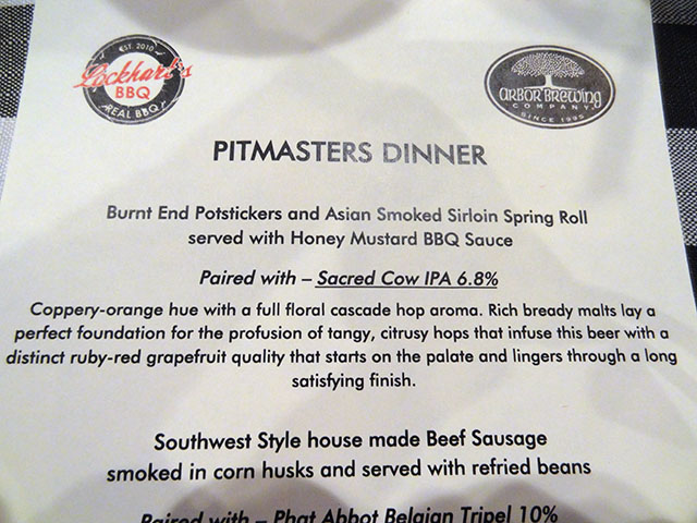 So March 19th, 2013 was the 6th Pitmaster’s Dinner at Lockhart’s BBQ in Royal Oak, Michigan. It was my third Pitmaster’s dinner and I was accompanied by my good friend John who introduced me to this delightful event. This particular soirée was paired with Arbor Brewing Company and the theme was beef dinner. Every dish had some element of beef in it.