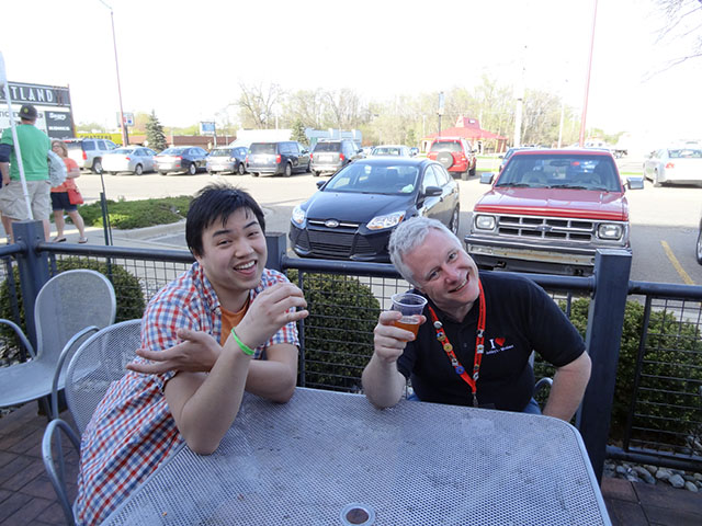 Another cool thing that happened, was the Arbor Brewing Company brand manager recognized John and I from Lockhart’s latest Pitmaster’s Dinner. She came up and asked if I was the one who wrote the post, and thanked me for the great review. It was pretty cool that she recognized us for one, and that she actually read the post! We talked to her for about 15-20 minutes before we took a picture and promised we’d be there for the Velvet Hammer release on May 31st.