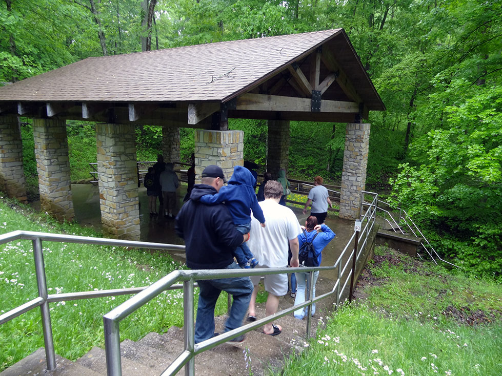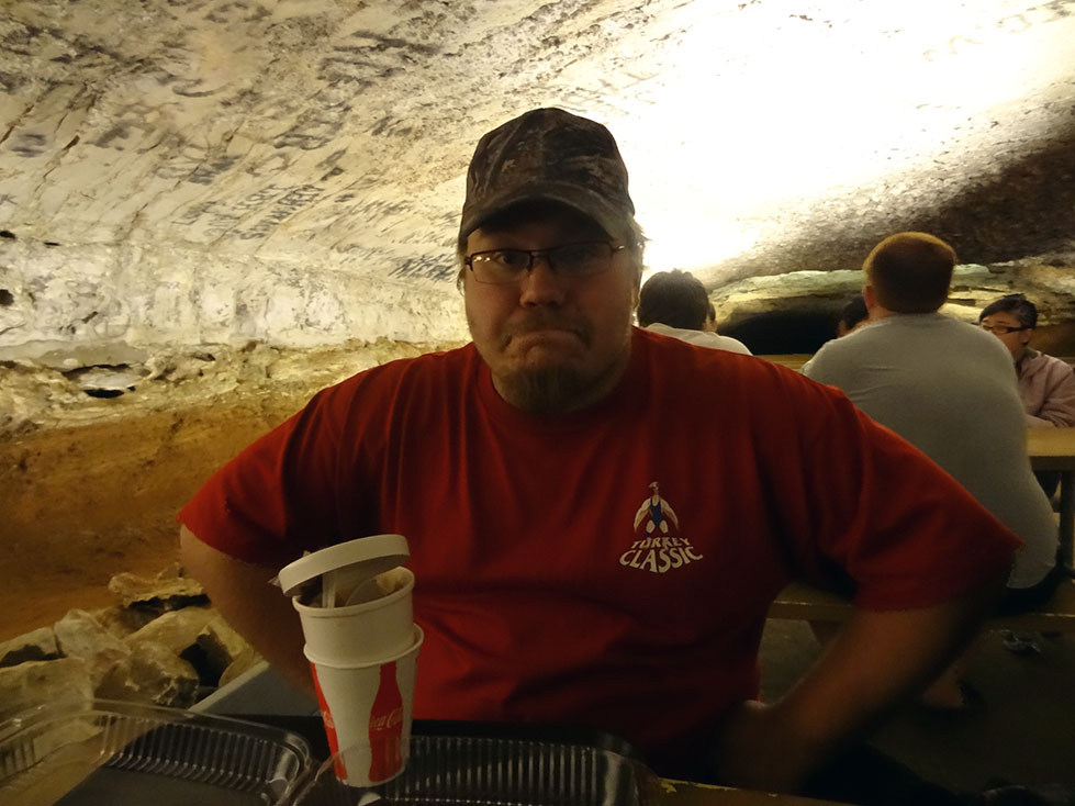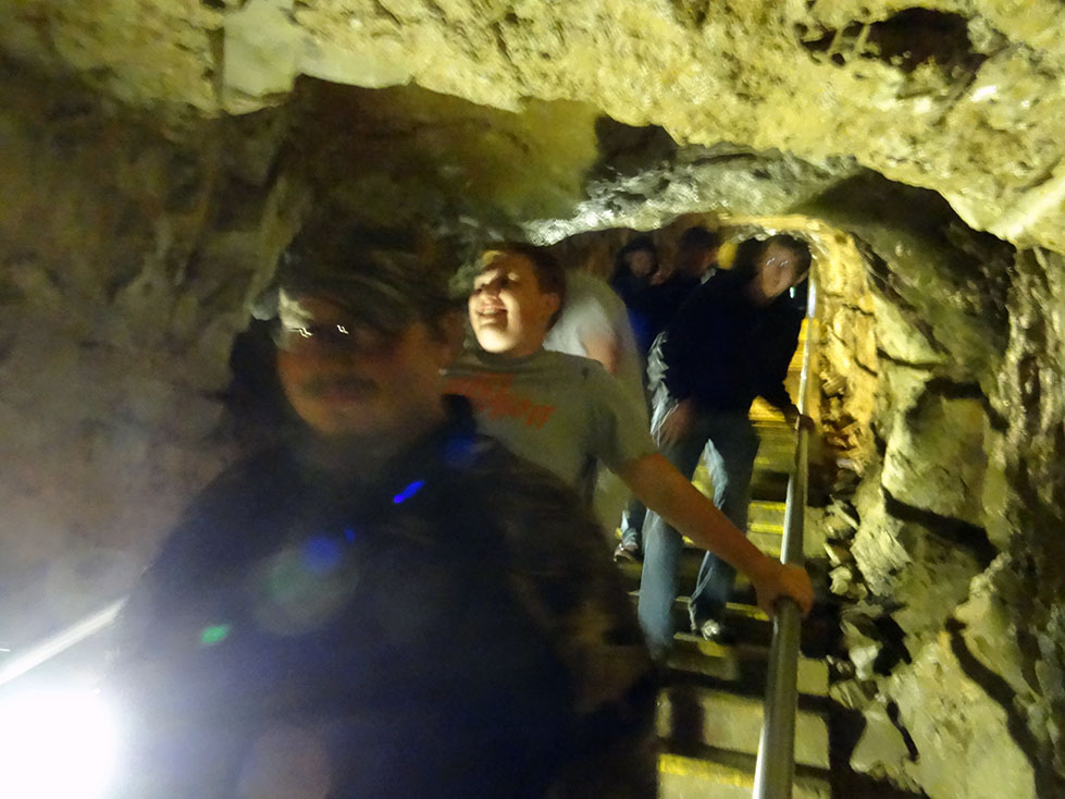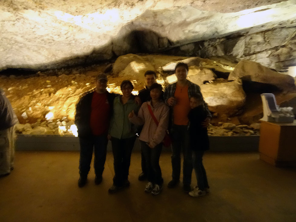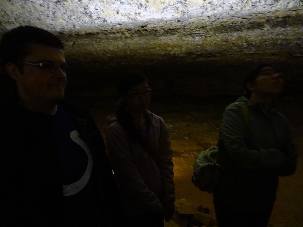During our stay in Indiana, we decided that since Mammoth caves was only 2 hours away, it would be a fun side-trip to visit before BBQfest started on May 10th. 8 of us piled into Lori and Zack’s Expedition, and the other 4 piled into Luke’s pickup for the 2 hour journey. Although nature tried to hinder us from exploring her cavernous wonders by making us drive through torrential rains (some might say monsoon), we made it to the national park in one piece.