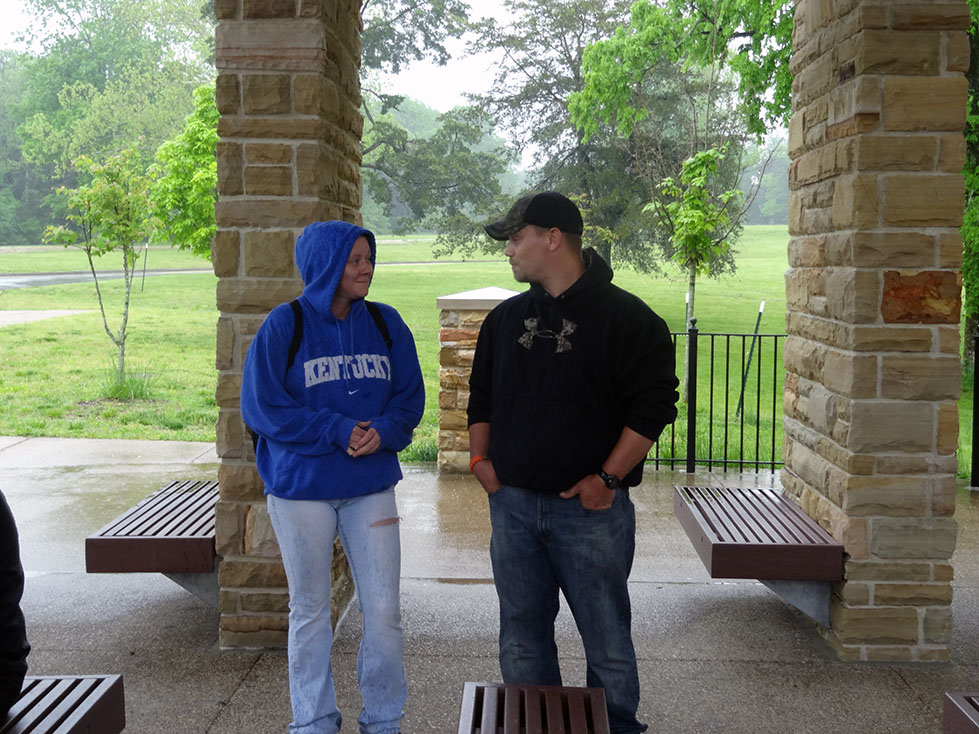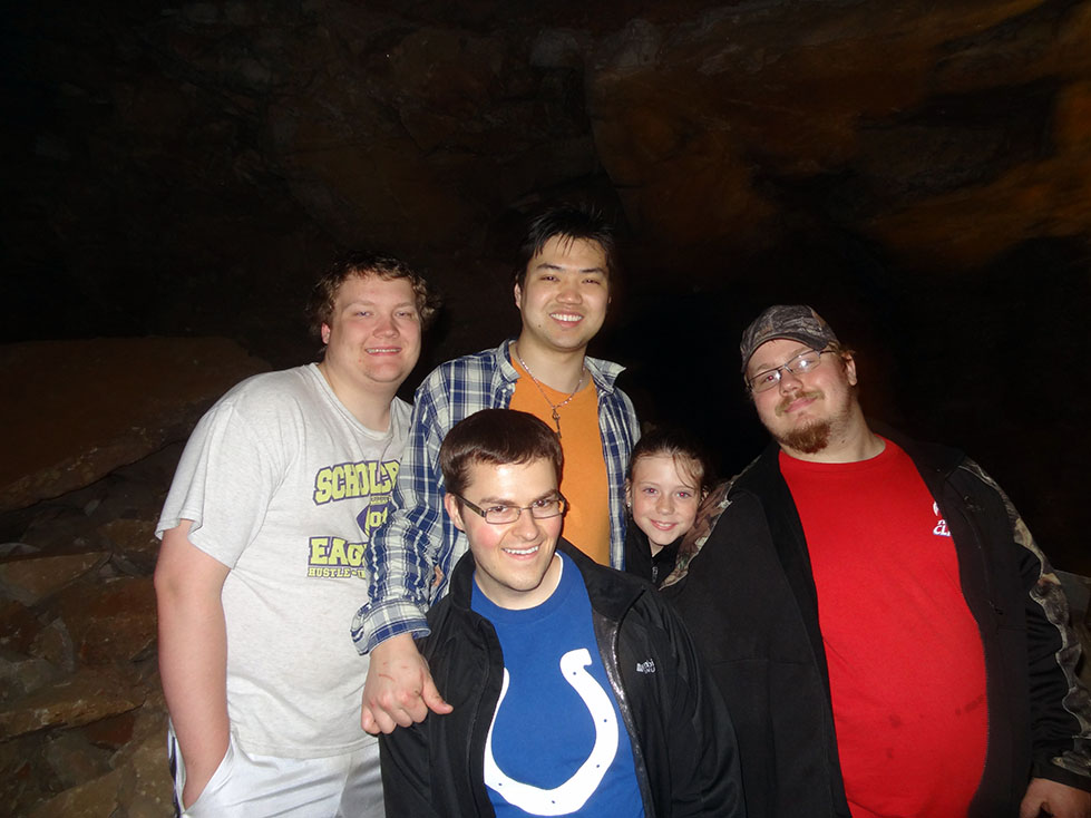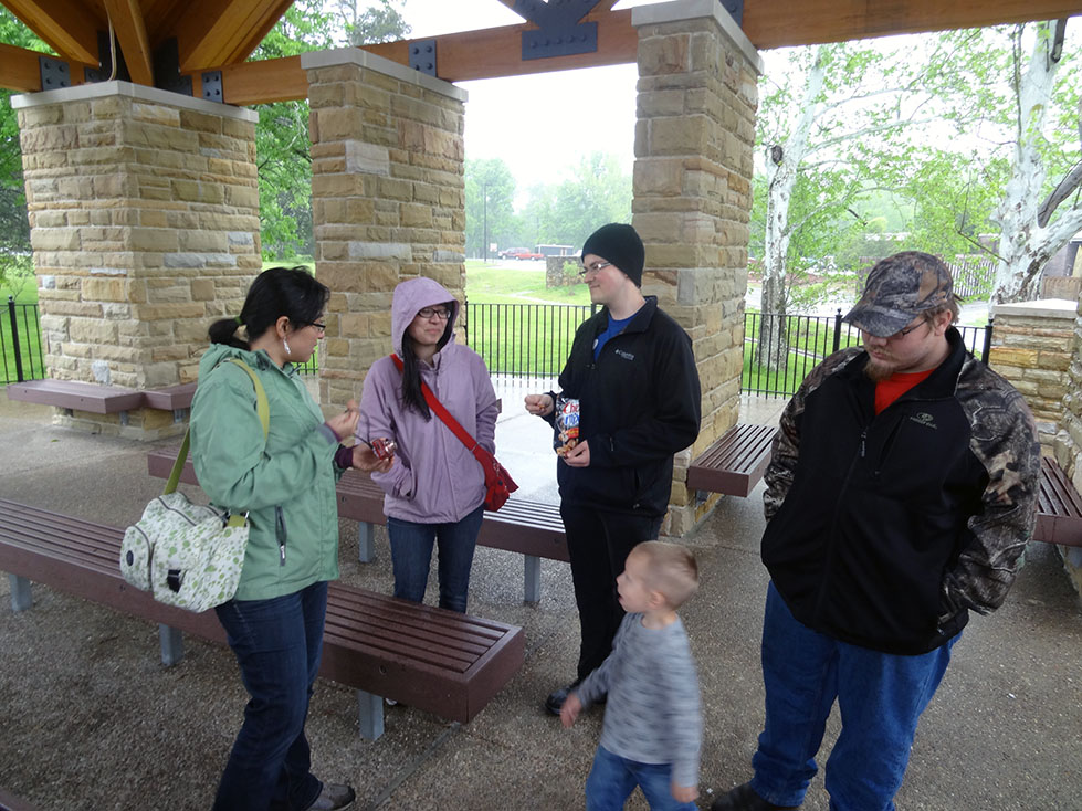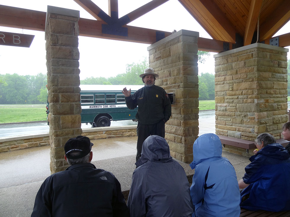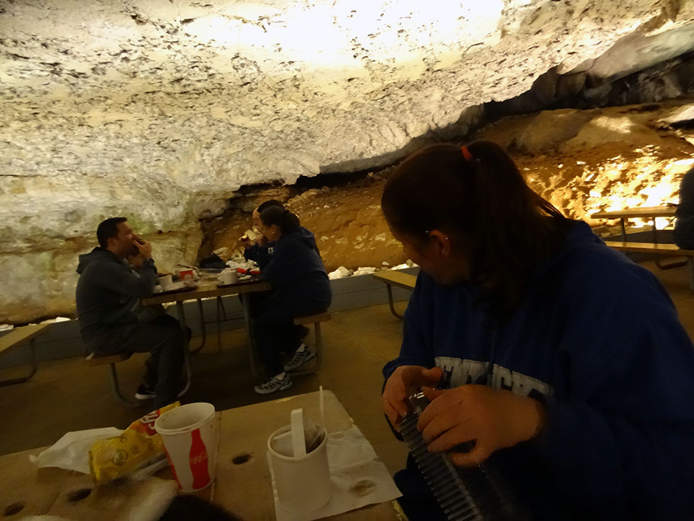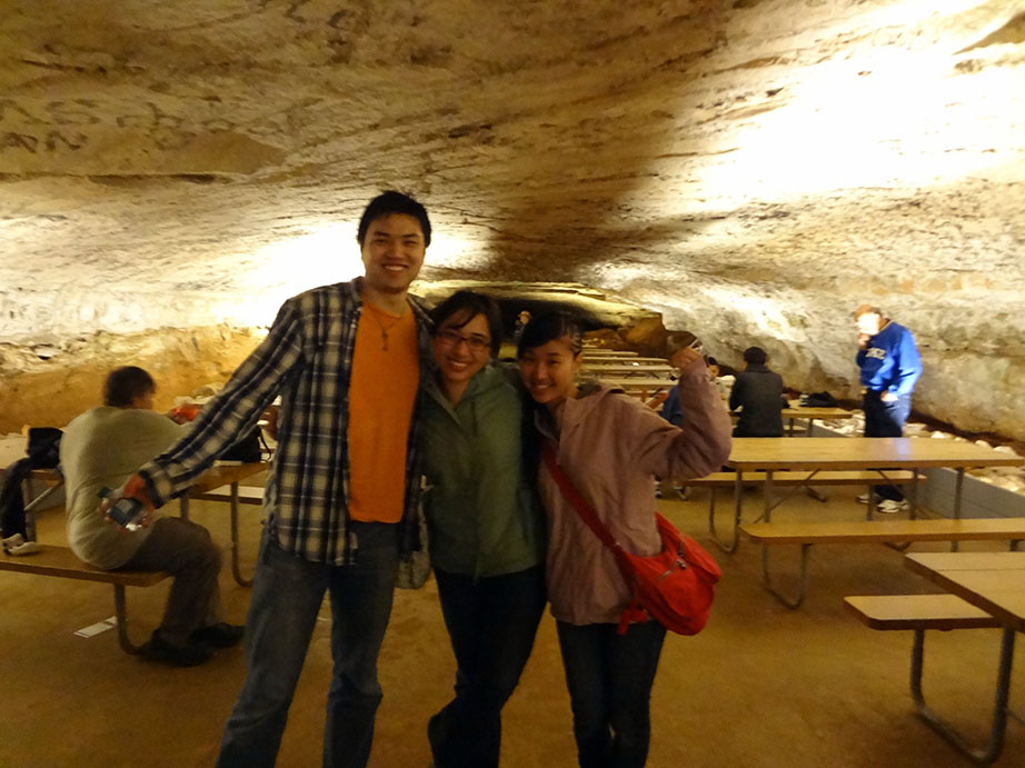During our stay in Indiana, we decided that since Mammoth caves was only 2 hours away, it would be a fun side-trip to visit before BBQfest started on May 10th. 8 of us piled into Lori and Zack’s Expedition, and the other 4 piled into Luke’s pickup for the 2 hour journey. Although nature tried to hinder us from exploring her cavernous wonders by making us drive through torrential rains (some might say monsoon), we made it to the national park in one piece.