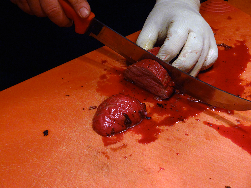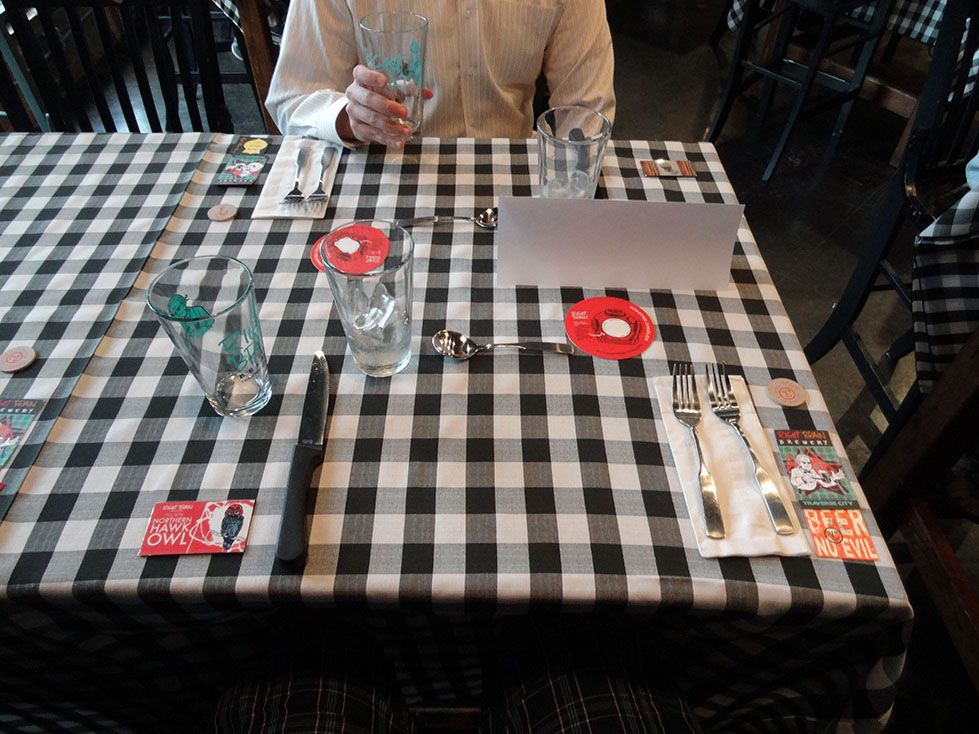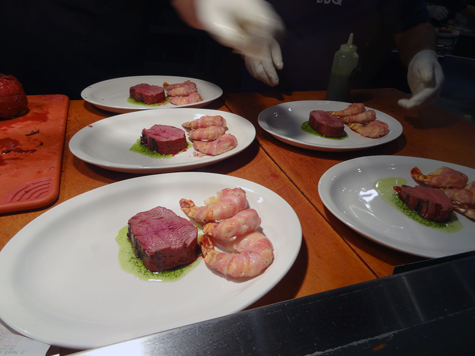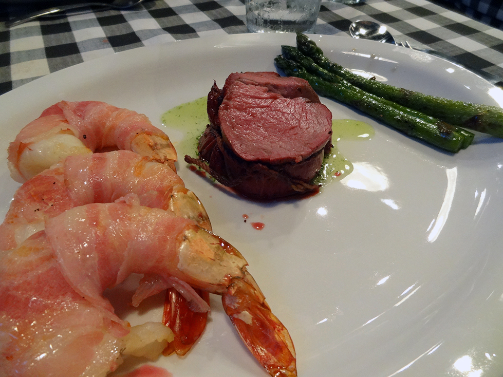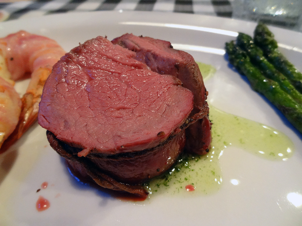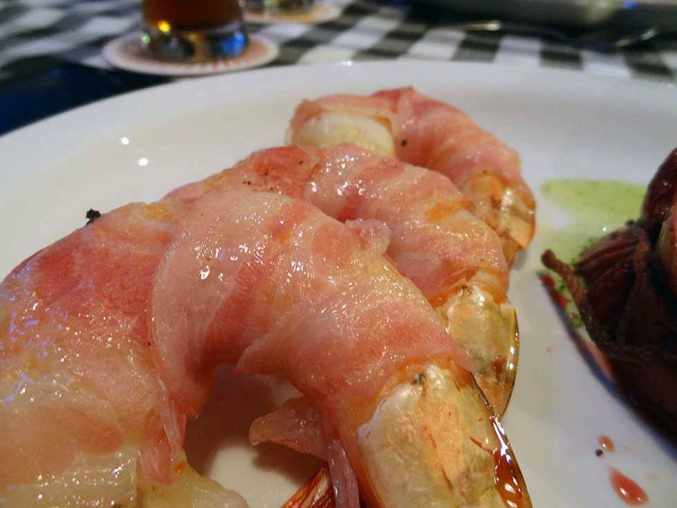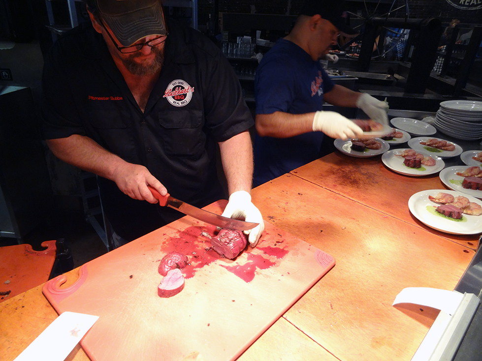 Your attention is immediately drawn so the jumbo shrimp wrapped in pancetta. These shrimp were huge, and I mean the diameter of this coiled mini-sea dragon was probably 3 inches. Large. Very large shrimp. By smoking the shrimp, the pancetta infused a lot of flavor into the shrimp though left it a bit salty. It was interesting because if you ate a bite of the shrimp, then drank the looping owl, the beer ended up cutting the saltiness while the shrimp brings out the bourbon flavor – a lot. The beer basically tasted like bourbon this way. The beef tenderloin was extremely succulent and melts-in-your-mouth amazing. It was sweet and buttery and when the beer was paired with it, the combination caused the bourbon flavor to disappear and left you with a light and crisp beer.