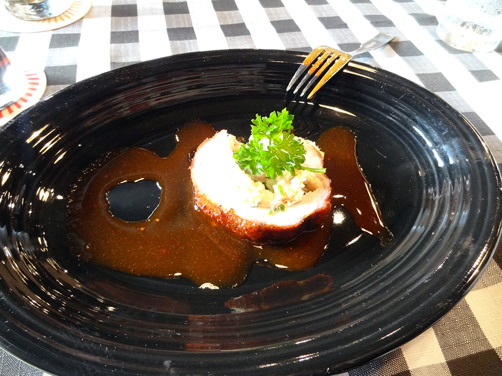 The way the pork loin was smoked left a crispy skin while maintaining a tender and moist interior. The crab that was stuffed inside the pork loin was stuffed in and smoked together. You can definitely taste the smokiness in the crab. Together with the spicy sauce that it was served with you get a great combination of creamy, smoky, juicy flavors that end with a slow heat. The beer didn’t really add or detract from the meal, though it did seem a little more bitter after the food. Both of these were great standalone offerings that made for a great appetizer.