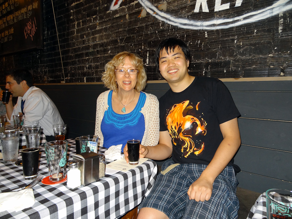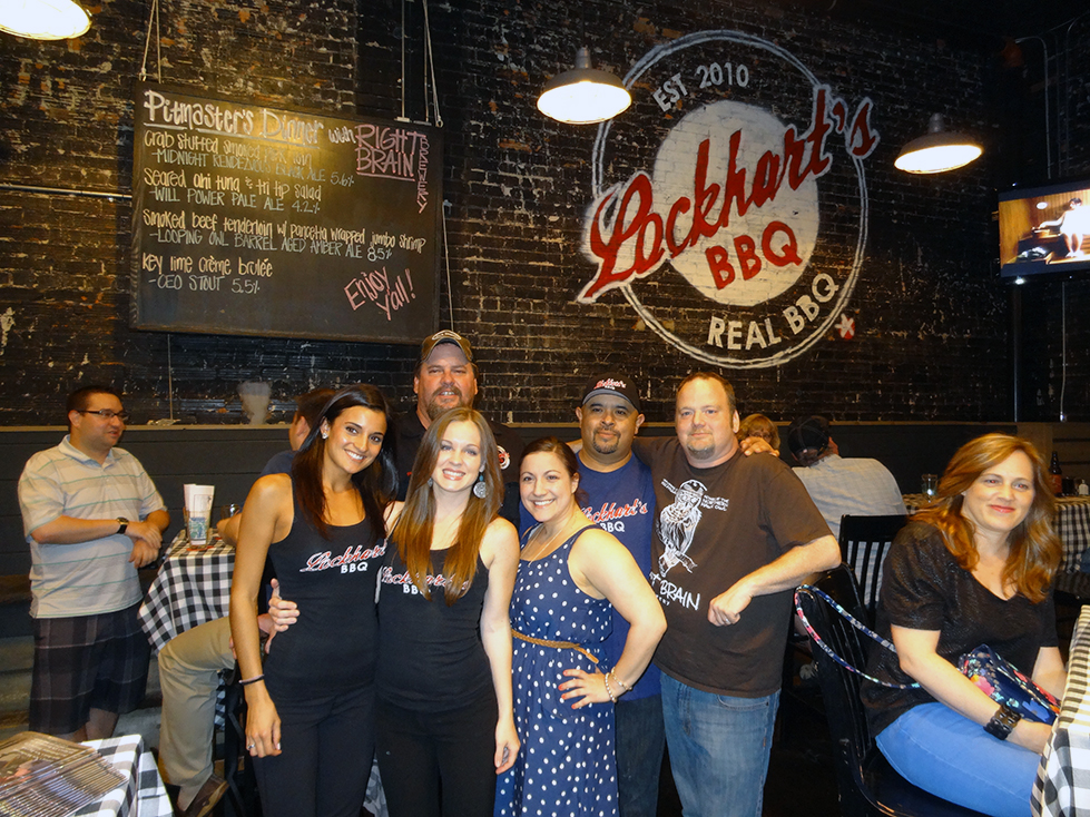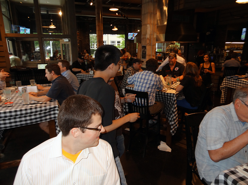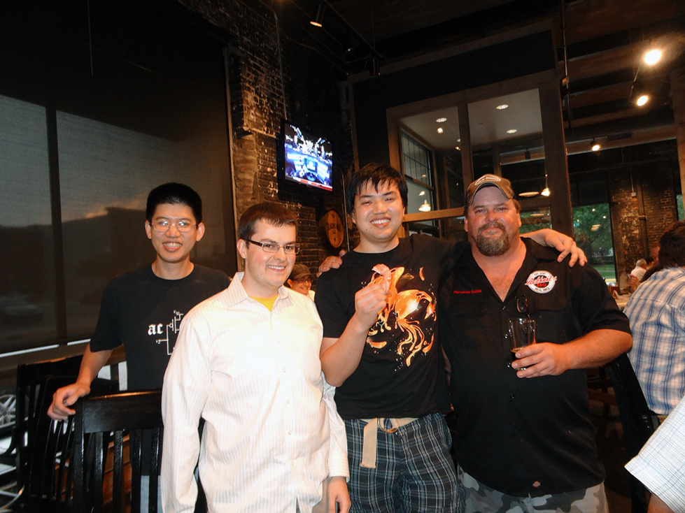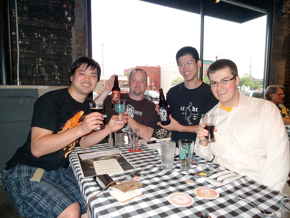 Right Brain representative Dave came prepared with swag and a raffle. But not just a raffle, he had enough prizes for everyone in attendance. It was just a matter of who got first pick. Luckily our boy Elson got second pick and wisely chose the set of two hard to find, bottled beers. After that I managed to snag a pretty cool hat, and John got a growler cozie for the growler he has at home.