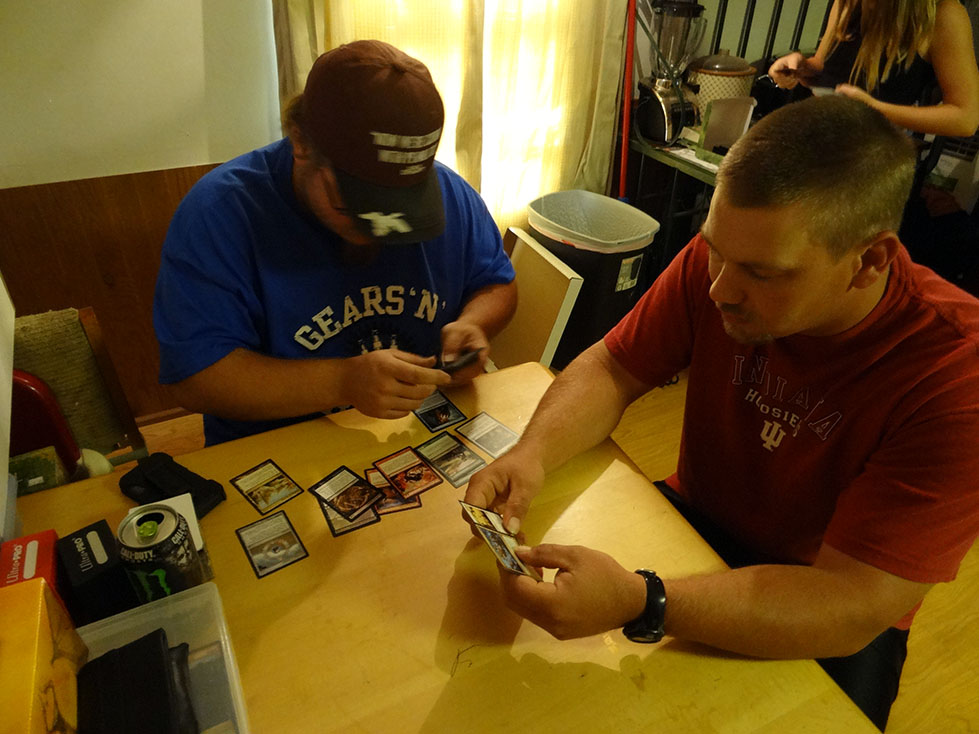 A lot of Saturday afternoon involved Magic: the Gathering. I had bought 40 dollars worth of commons/uncommons from RIW Hobbies for Zack and Jimmy and they had a hell of a time sorting them into the appropriate boxes. We also made a trip to the local card shop down there in Evansville and picked up some pre-made decks from Theros.
