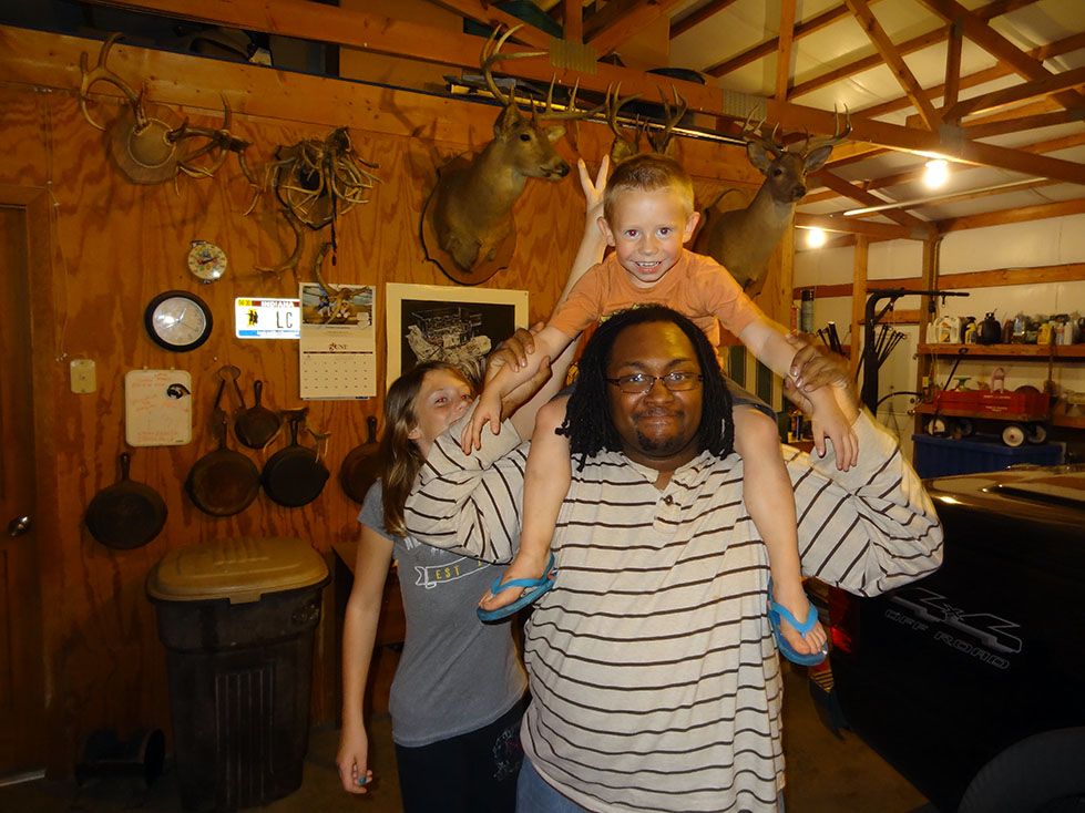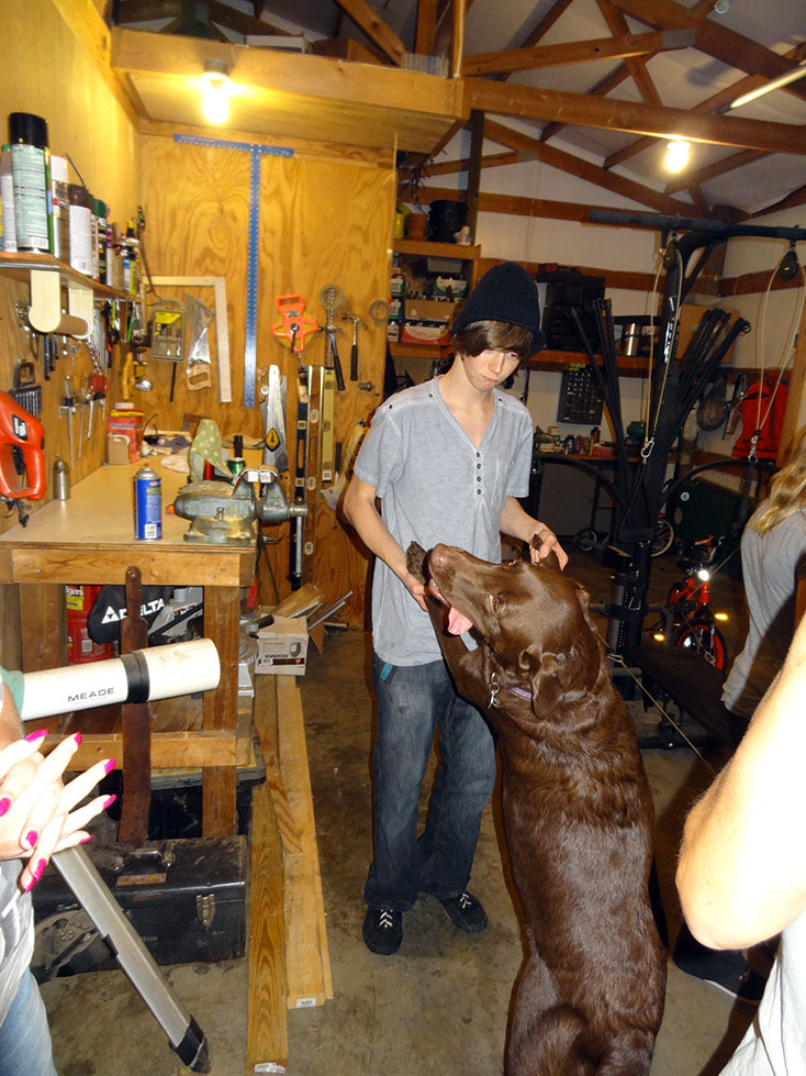 When we arrived, we were greeted by two dogs (Millie, the Chocolate Lab and Penny, the Newfoundland) and Lori’s Mom, Grammy. We hung out there and messed around in the garage/breezeway before we headed out. I also took this opportunity to take a picture with Eli for the first time. Well a picture of us together for the first time. I think this completes the set for people I’ve taken pictures with in the Downs family. After our visit, we made our way to Walmart.