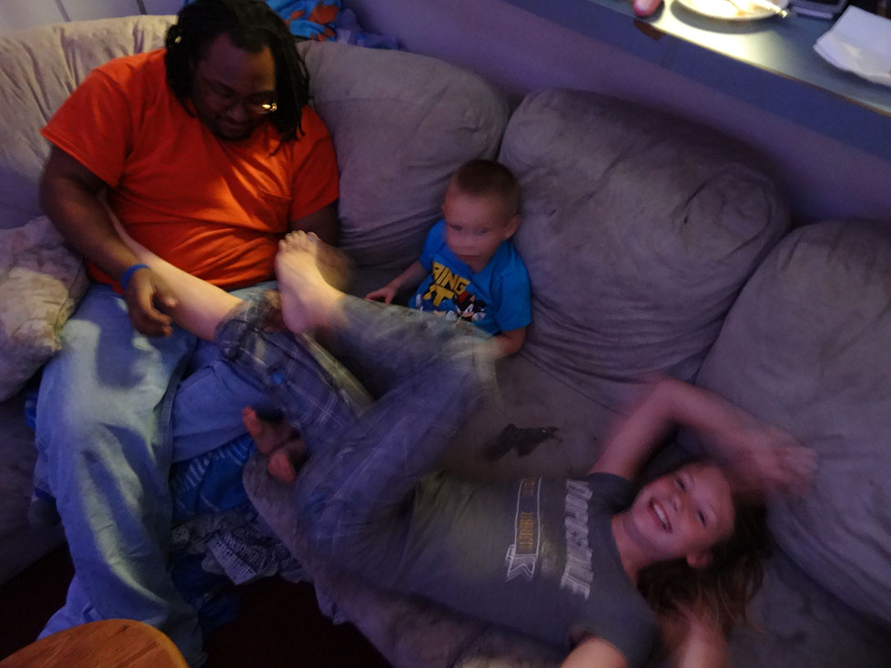The next day, Dante’s car (Erica) had her brake pads replaced thanks to Jimmy. The rest of the day we just relaxed and played video games. Primarily, Playstation All-Stars and now Dungeon Defenders. The kids have school Monday and Jimmy has work, so I think the morning and the afternoon will be spent hanging out with Zack and Lori before heading out to sample the wares at Fall Festival. Though I might try to convince Lori and Zack to make a preliminary trip during the day.