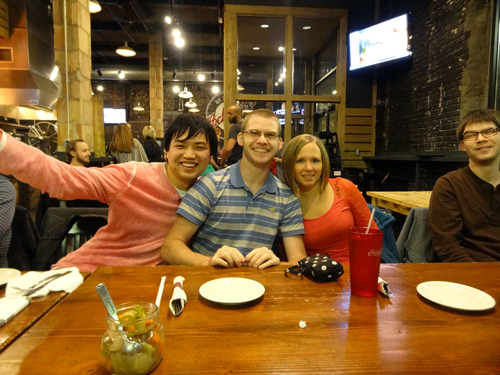 After dinner, most people headed back to my place for drinks and hanging out. I put on some music from a playlist I tweaked from the housewarming party and we all had some jello shots/pudding shots. Thankfully we finished the jello shots, but the pudding shots are being donated to some friends that want them.