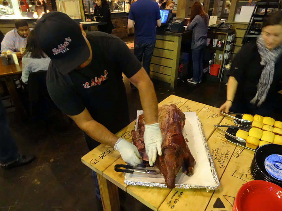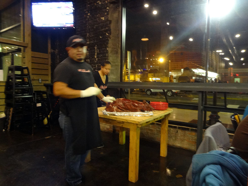 After wandering around Youmacon for a few hours, we headed straight to Royal Oak for a delicious Whole Hog Dinner. Everyone that was supposed to come came! No one flaked, it was quite magical. I even saw Alexandra Peri there by pure coincidence. Unfortunately Pitmaster Bubba couldn’t make it, but his spirit was there with us – in the pig.