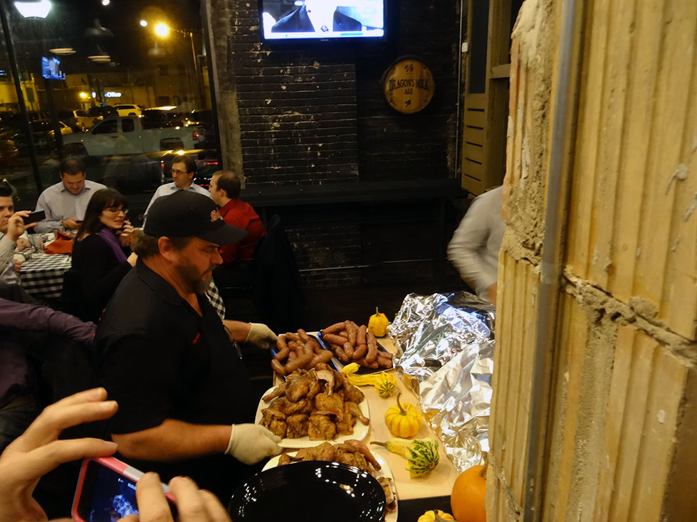 The time for another Pitmaster’s came upon us on Tuesday November 19th, 2013. The theme this time was a Harvest Dinner given the proximity of the foodfest that is Thanksgiving. The main course was a whole hog. This will now be the third whole hog I have consumed at Lockhart’s BBQ and I could not be happier. This is now our 4th Pitmaster’s and I am continue to be impressed by the food that is being served.