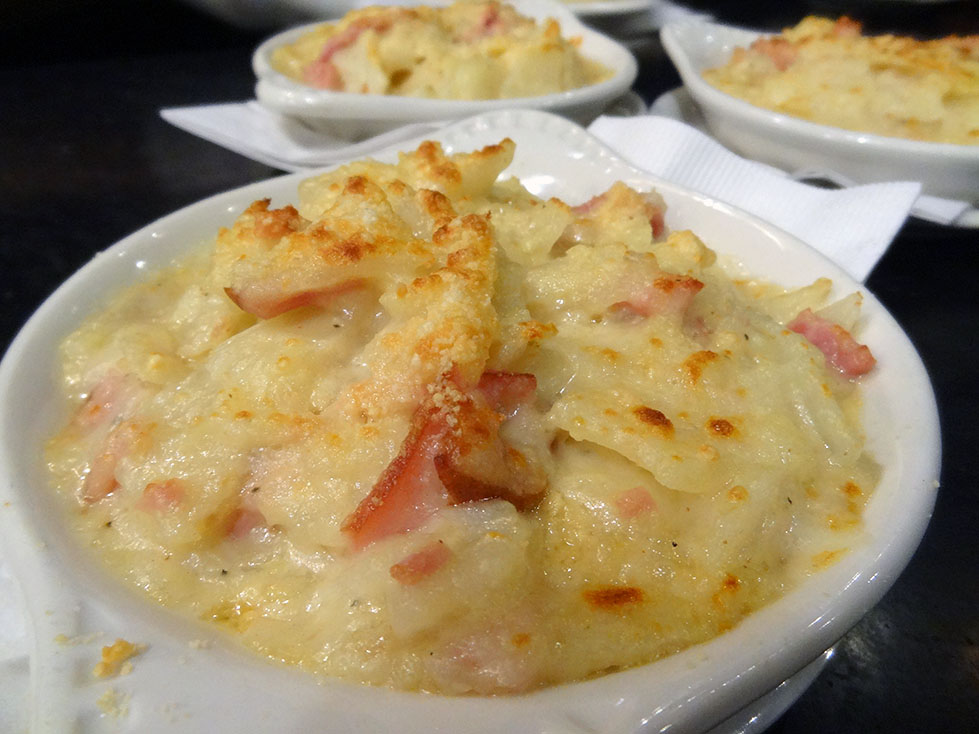 Finally the pièce de resistance was ready – the cornucopia. This course was served with an Oktoberfest and while it remained a light beer that was typical of most oktoberfests I’ve had, the food really stole the show. The meat cornucopia was served with potatoes au gratin that were surprisingly light. Usually with au gratins I find that the dish is very creamy and a little heavy, but chef Rene did an amazing job keeping the side light and put enough ham so that it’s flavor permeated through the dish without overwhelming it. There were vegetables that were served with the dish that were delicious and cooked in the sweet better we had eaten earlier with the altbier bread. The sausages were moist and had a little bit of kick to them. The chicken was incredibly moist and well seasoned. The meat was extremely tender and just fell off the bones. The pork was cooked amazingly. This is now the third time John and I have had the whole hog at Lockhart’s and I dare say this pig may have been the best one yet. The skin was crispy and well seasoned, the meat was all very moist and tender – full of delicious pork flavor, and I was given some leg and cheek meat to try. The leg meat was chock full of flavor, more so than any part of the pig, and the cheek meat was still the most tender part that I tried.