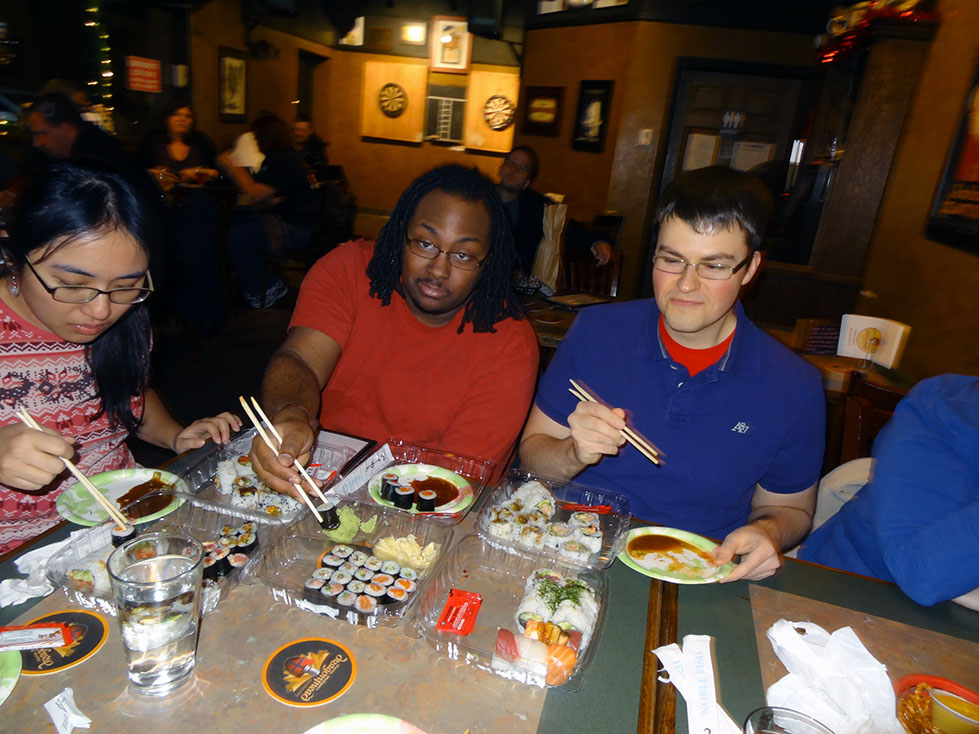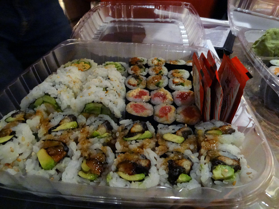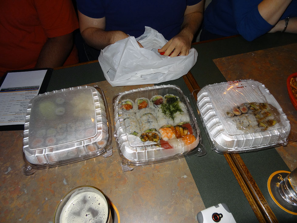 It was a pretty awesome turnout, and we probably were one of the few people to ever bring sushi into that establishment to eat with our drinks.