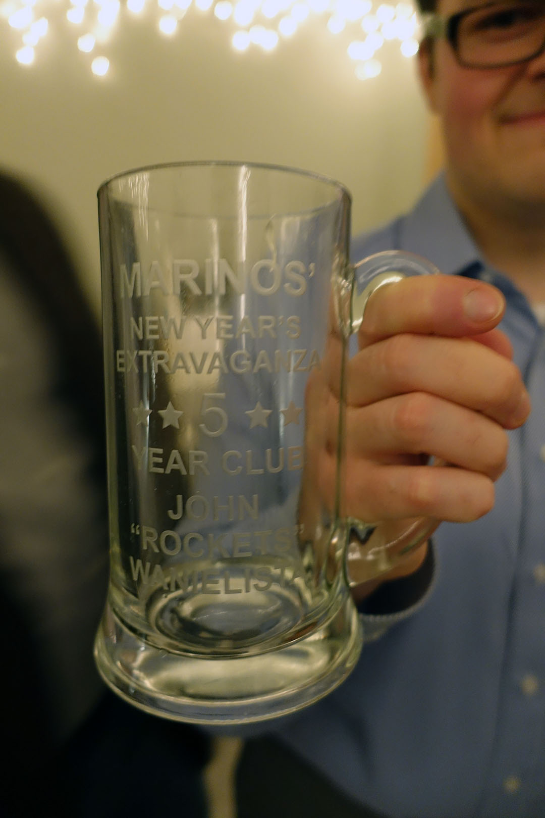 The first stop was Marinos’ house for his annual New Year’s Eve party in Ann Arbor. It’s been a while since I’ve gone to the party, so it was great to see friends from over a decade ago and catch up with them. Marinos made placards of everyone that RSVP’d early and also there was a souvenir mug. The number in the beer indicated the number of times youv’e attended. John is one of the few people that’s been there all 9 years, and those that have attended for 5 years or more got a personalized mug.