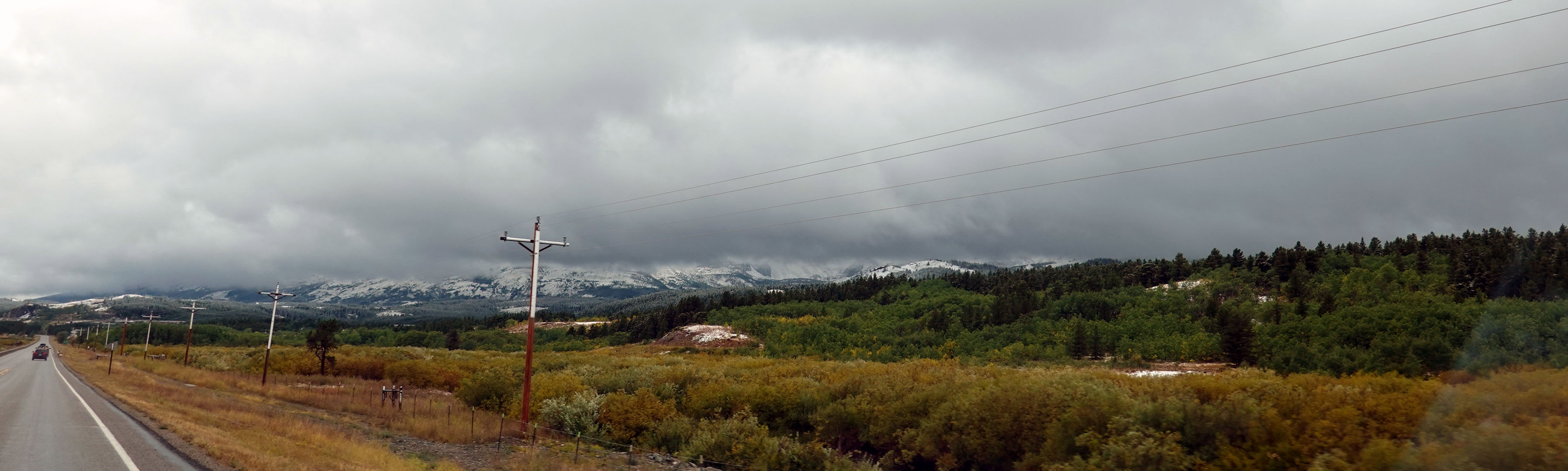 It was a long day of driving. Let me tell you, driving through the state of Montana is extremely monotonous. Everything looked the same….for 6 hours. Just flat fields and expanse as far as the eye can see. Home on the range indeed. The gold on green was pretty but it was a rough drive west. One thing Ben and I noticed, almost every small town we drove by had an Asian restaurant/market. It was an interesting observation we made. As we approached Glacier National Park, the temperature dropped to 36°F and we had heard at a gas station that it snowed. Luckily, as we drove through the temperature rose about 15°, so it wasn’t too bad.