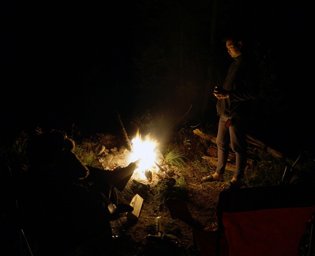 We found a pretty awesome place for camp, and we made the most of it. It was a lot of fun. It’s really hard to describe the experience of building the fire and just hanging out around it drinking and eating. I took some pictures, but it just didn’t do the whole experience justice. I think Adam put it best, “This is just absolute freedom.” There are no park rangers telling us when to be quiet, or that we couldn’t build a fire, there were simply signs posted to please extinguish your fire and keep your food in your car so that wild animals wouldn’t be attracted. The skies cleared up, and despite the waning half moon we saw the milky way and innumerable stars. We walked over to the entrance where there was a huge clearing and took some pictures and did some star gazing. The whole night was really something. Magical.