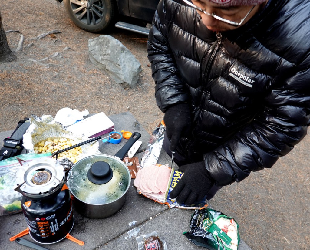 Both mornings, we cooked some instant ramen with some SPAM garnish before we went to go see the sights. It’s surprising how delicious you can make instant ramen with some simple additions. Though we didn’t do it, we discussed how the ramen would be a great food item for backpacking due to its lightweight and carbs.