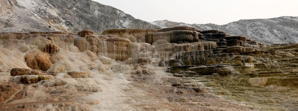 Adam and Ben hadn’t been to Yellowstone before, but I visited back when I was 10 with my family. It’s amazing how much I remember about the park from then. We watched Old Faithful erupt, we walked around the upper geyser basin, went on some minor hikes, we saw some of the colorful hot springs and pools, we visited the Mammoth Hot Springs, and we drove and stopped at a lot of the overlooks to take in the vistas. A lot of it was familiar to me, but all of it was beautiful.